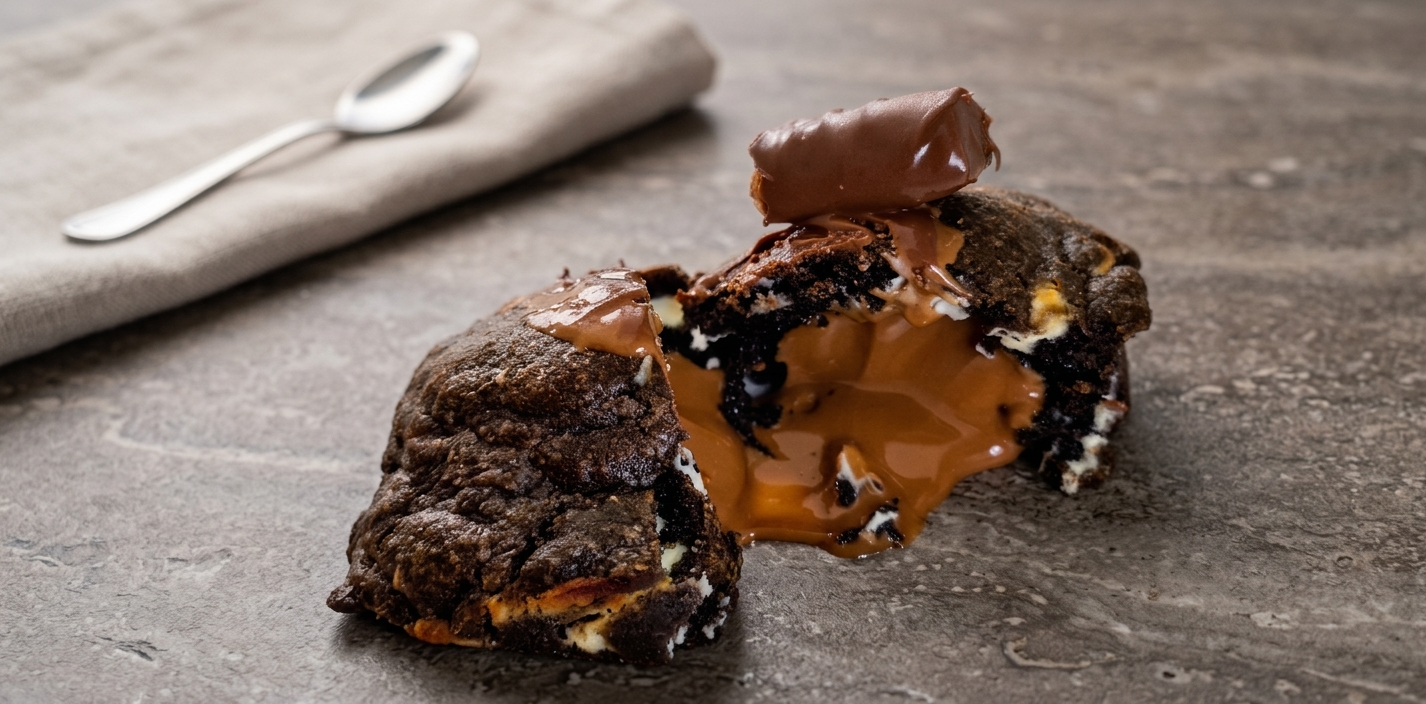 Cada mordisco es una experiencia: primero el toque intenso del cacao, después la dulzura del chocolate blanco… y finalmente ese corazón de caramelo salado que lo cambia todo.